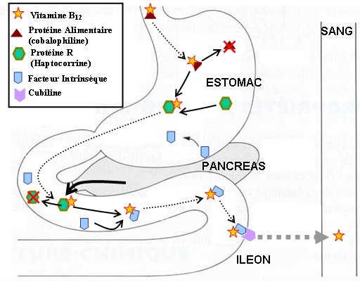 Quant au facteur intrisèque, son action débute dans l’estomac pour se poursuivre dans le petit intestin.